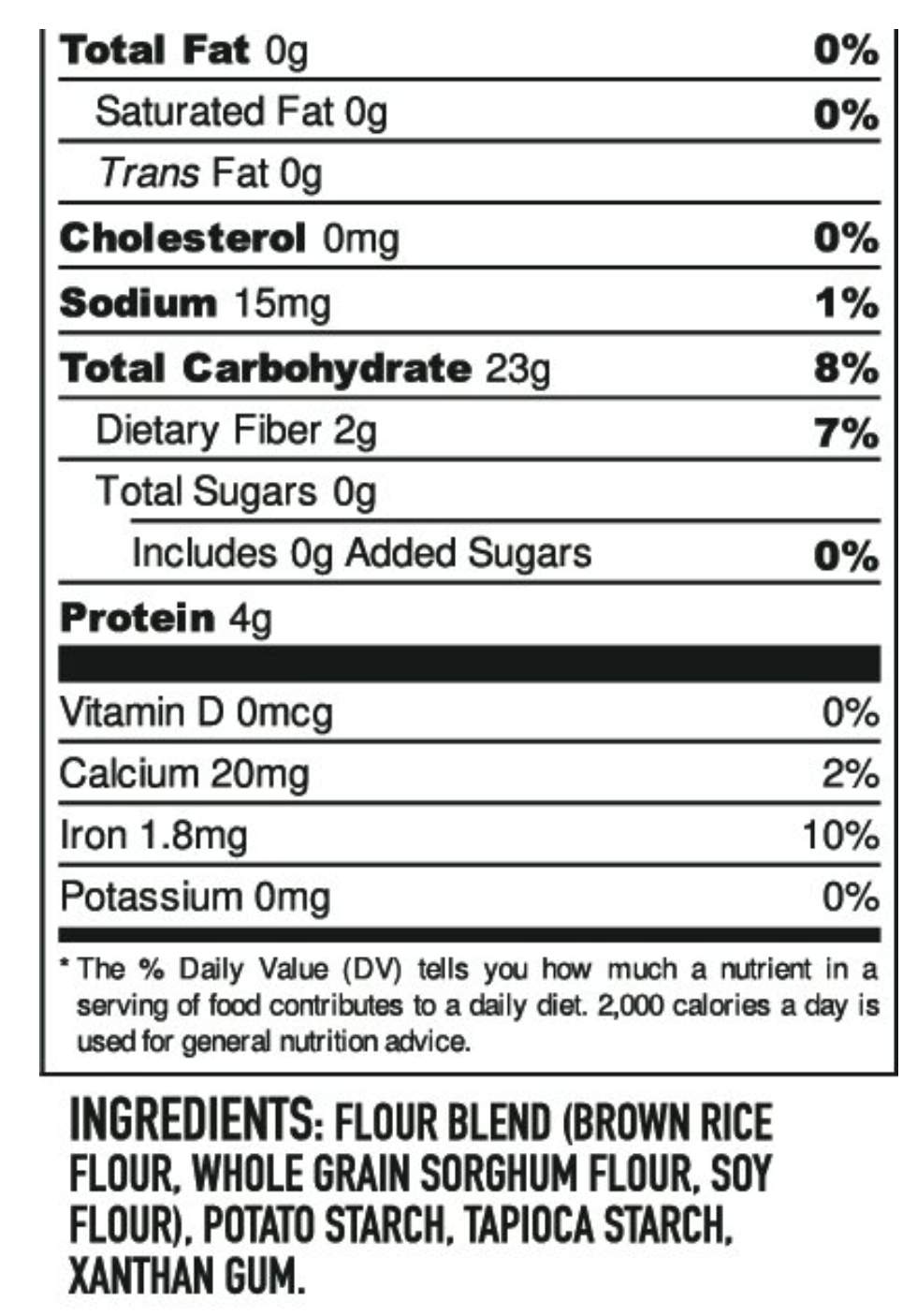 Long Grain Rice Flour, Potato Starch, Sorghum Flour, Soy Flour, Tapioca Starch, Xanthan Gum